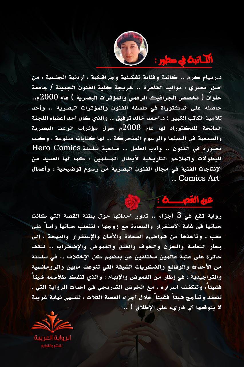 A Colored PDF E-Book of 535 pages, It revolves around the heroine of the story, whose life was very stable and happy with her husband. Her life turned upside down, taking her from the shores of happiness, safety, stability and joy, to the seas of unhappiness, sadness, fear, anxiety, ambiguity and turmoil.. to stand bewildered at the threshold. Two worlds completely different from each other.. In a series of interesting events, facts and memories that varied between romantic and tragic, in a framework of mystery and ambiguity, whose intricacies are gradually being loosened, and its secrets are revealed, with the gradual delving into the events of the novel, which are complicated and ignited little by little through parts. The three story, to end with a strange ending that no reader would ever expect!